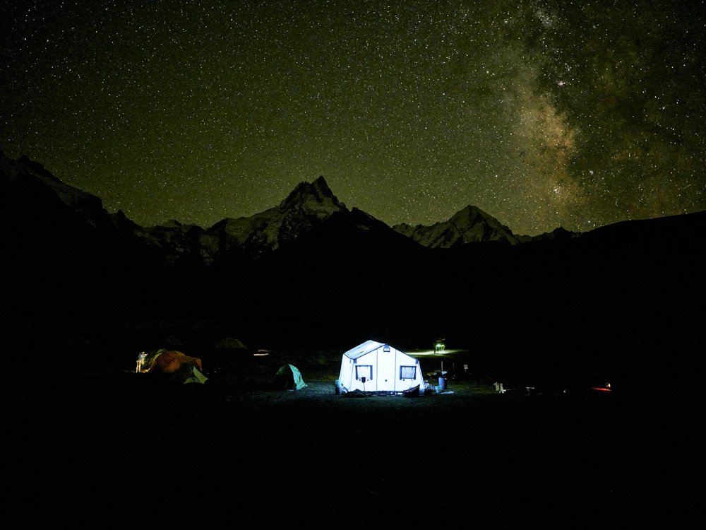 FP: Our field plans depend on the specific research goals of the expedition, but often we try to characterize the melt, climate, and hydrological processes in the catchments where we work. For example, we install a weather station, measure river discharge, set up stakes to measure ice melt, and install time-lapse cameras to capture changes on the glacier. When we camp near the glaciers, we wake up early, have breakfast and then prepare the equipment for the day. We then have to hike onto the glacier to conduct the measurements and return in the late afternoon. Even after dinner, we often have a lot to do: sorting data, charging equipment, and planning for the next day. Evenings are the time to debrief, and then a nice time to relax or read, but usually, we go to bed early because since at such high altitudes it gets seriously cold at night and a warm sleeping bag is tempting.