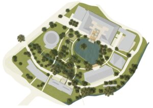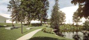 Im Zuge der Arbeiten am VISTA Science Experience Center wird auch der umgebende Park umgestaltet und verschönert. Mit zusätzlicher Bepflanzung, einem abgeflachten Teichufer und großzügig gestalteten Sitzgelegenheiten wird er Mitarbeitenden und Gästen einen schattigen Platz bieten, um ins Gespräch zu kommen und sich zu erholen.