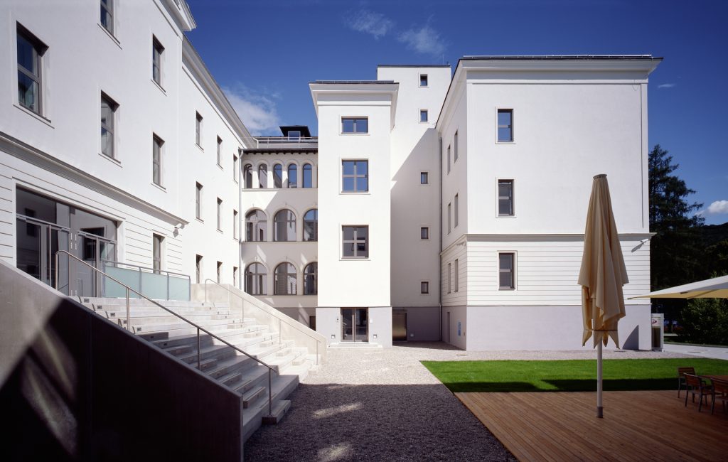 Im Hauptgebäude mit seinen rund 9.000 m² Fläche sind Forschungsgruppen, die Mondi-Seminarräume, das Guesthouse, ein Fitnessstudio und die „ERROR BAR“ untergebracht. Das um 1880 errichtete Gebäude verfügt auch über einen Ballsaal. In seiner heutigen Funktion wird dieser Ort als Seminarraum und für Veranstaltungen aller Art genutzt. Mit der Raiffeisen Lecture Hall verfügt das ISTA über einen hochmodernen Hörsaal, der 200 Personen Platz bietet. Die vor dem Hauptgebäude gelegene Terrasse lädt im Frühling und Sommer zu entspannten Pausen, informellen Besprechungen und sogar zum Grillen ein.