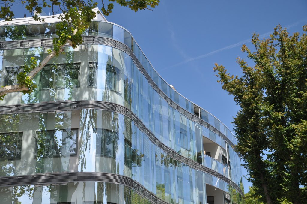 Am Gebäude der Preclinical Facility gelangt man zum Lab Building East. In dem 7.000 m² großen Gebäude arbeiten Neurowissenschafter:innen in einer architektonisch-futuristischen Umgebung. Viel natürliches Licht und die offene Gestaltung der Räumlichkeiten fördern Kommunikation und Austausch zwischen den Forscher:innen. Im Lab Building East befindet sich auch die Electron Microscopy Facility.
