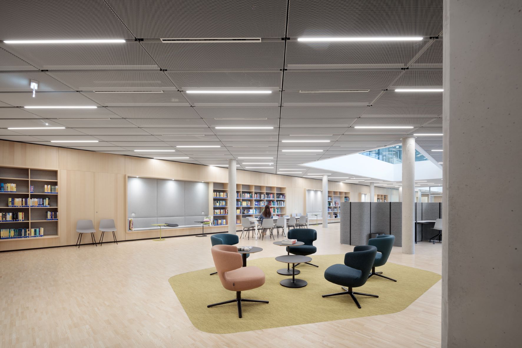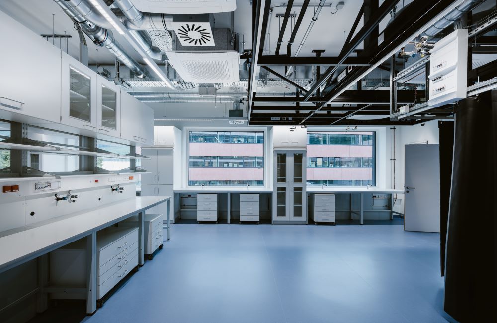Das im September 2021 eröffnete Sunstone Building bietet mit einer Fläche von fast 15.000 m² Platz für bis zu acht experimentelle Forschungsgruppen mit Schwerpunkt Chemie. Die Institutsbibliothek, die einen großen Bereich im Erdgeschoss einnimmt, bildet eine großzügige, zusammenhängende Lernlandschaft und offene Arbeitsbereiche. Darüber befinden sich großzügige Büroflächen für die Graduate School und unsere Studenten, die eifrig daran arbeiten, ihre Doktorandenausbildung am ISTA abzuschließen. Neben einem großen Seminarraum für 90 Personen bietet dieses Gebäude auf mehreren Ebenen Platz für Co-Working Spaces und die Verwaltung der Graduate School.